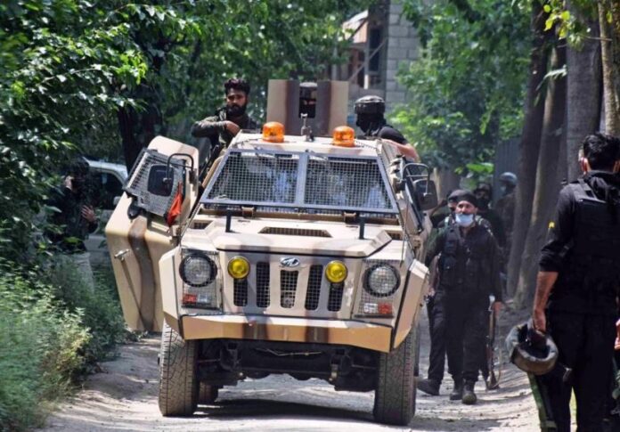 The police said the encounter started after security forces cordoned off the area and launched a search operation following information about the presence of terrorists there.