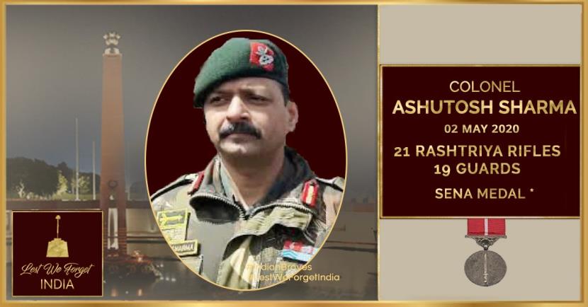 Army officials said Colonel Ashutosh Sharma belonging to the Guards Regiment had been serving in the Kashmir valley for a long time and was twice awarded the Sena Medal for gallantry including one for his bravery as commanding officer.
