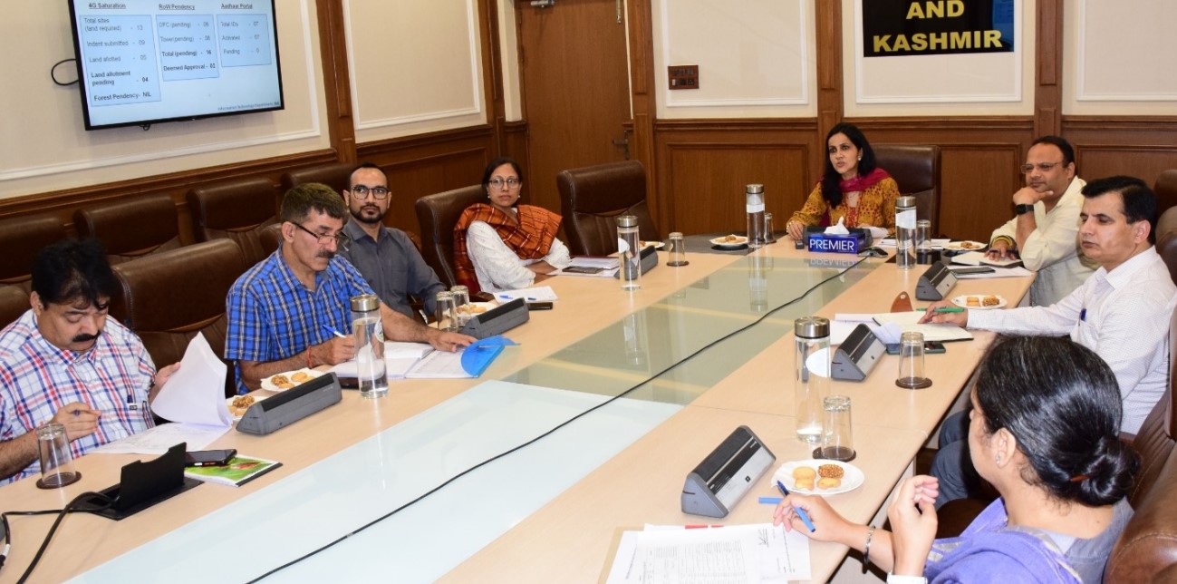 JAMMU JUNE 15: Commissioner Secretary, Information Technology, Prerna Puri, today held a meeting with Deputy Commissioners to review status of 4G saturation, Right of Way pendency and Aadhaar saturation in districts of Jammu and Kashmir. The meeting focussed on expeditious roll out and implementation plan for 4G saturation, RoW pendencies on GatiShakti Portal and onboarding of districts on State Aadhaar Portal for the UT.