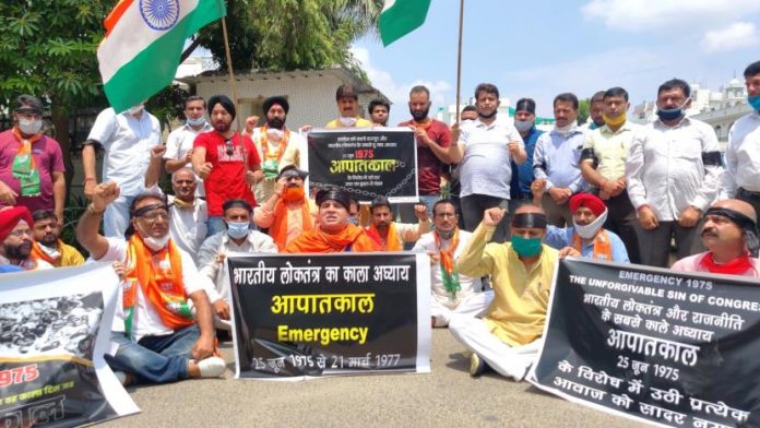 J&K BJP vice-president, Yudhvir Sethi, general secretary, Dr. D K Manyal, programme coordinator, Ajay Pargal, office secretary, Tilak Raj Gupta, media secretary, Dr. Pardeep Mahotra, Executive Committee, Member, Nand Kishore, BJYM president, Arun Dev Singh Jamwal, district general secretary, Naresh Sharma, Subhash Gupta and others also participated in the protest against the emergency imposed in 1975.