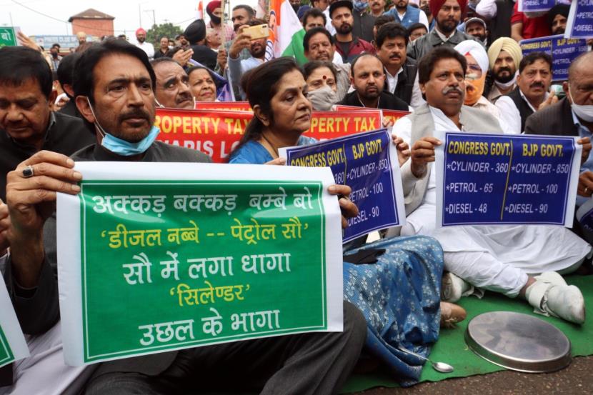 JAMMU: All India Congress Committee (AICC) in-charge for Jammu and Kashmir Rajni Patil and senior leader G A Mir along with hundreds of party workers on Monday protested against the BJP-led government at the centre over “rising†fuel prices, inflation and unemployment in the country.