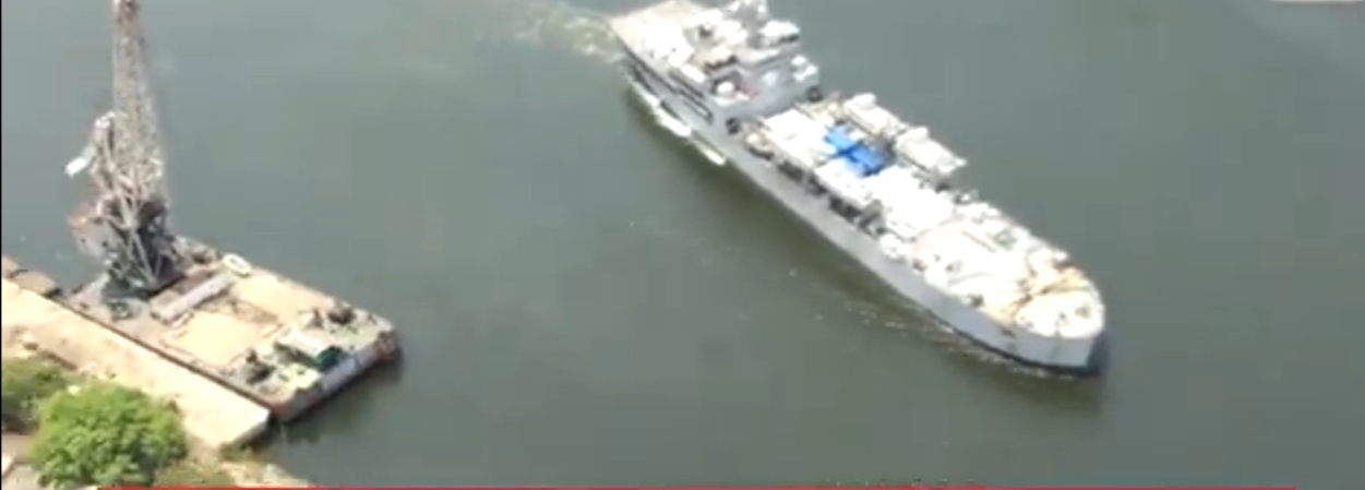 Indian Navy ship Airavat is reaching Visakhapatnam from Singapore carrying eight cryogenic oxygen tanks each having a capacity of 20 metric tonnes of oxygen and other supplies.