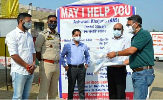 The Retd. IGP handed over 100 Personal Protection Equipment Kits to Chief Medical Officer, Dr Ashok Choudhary for further distribution among the Frontline workers performing duties in Lakhanpur Sample Collection Centre and other staff dealing with the COVID-19 related duties.