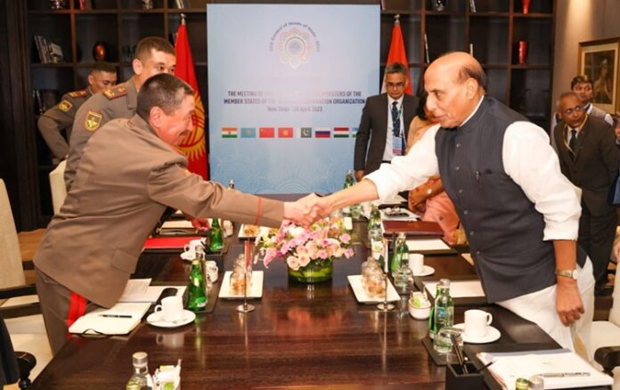 New Delhi April 28: Raksha Mantri Shri Rajnath Singh held bilateral meetings with Minister of Defence of Uzbekistan Lieutenant General Bakhodir Kurbanov, Minister of Defence of Belarus Lieutenant General Victor Khrenin and Minister of Defence of Kyrgyzstan Lieutenant General Bekbolotov B Asankalievich on the sidelines of Shanghai Cooperation Organisation (SCO) Defence Ministers’ meeting in New Delhi on April 28, 2023. The entire gamut of defence cooperation with the three countries was reviewed during the meetings, with a focus on identifying beneficial avenues for furthering bilateral ties. Issues of mutual interest were also discussed.