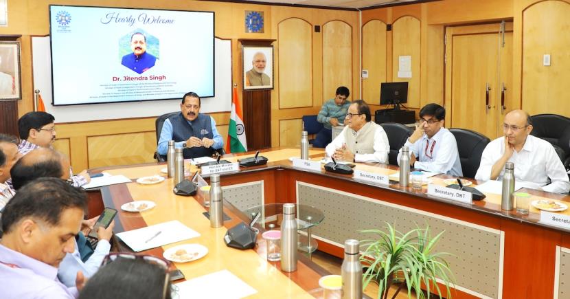 Union Minister took a review meeting having presence of all secretaries in Science and Technology Ministry . Dr. Ajay Kumar Sood, PSA to Government of India along with Prof. Abhay Karandikar, secretary, DST ; Dr. Rajesh Gokhale, Secretary,DBT along senior scientists ISRO and CSIR were also present.