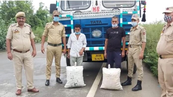 Two gas tankers driven by Punjab residents Jaspreet Singh and Sher Khan were intercepted for checking on the Jammu-Pathankot national highway near Rajbagh, leading to the recovery of 34.96 kg poppy straw, an official said.