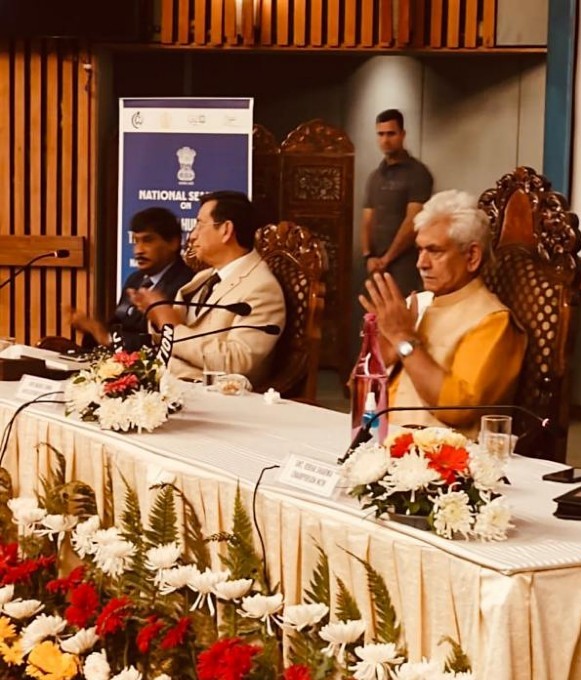Srinagar, April 27: Lieutenant Governor Manoj Sinha addressed the National Seminar on Anti Human Trafficking Awareness organized by National Commission for Women, in collaboration with Social Welfare Department and J&K Police, today.