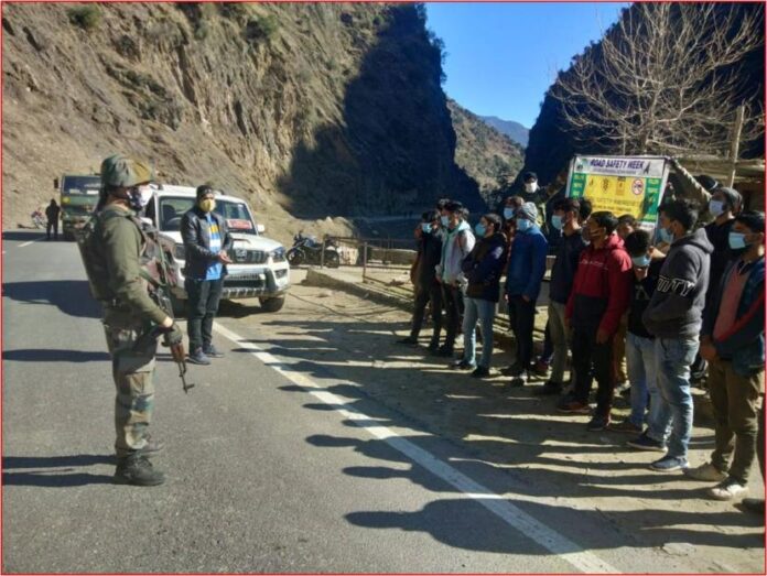 KISHTWAR: Indian Army in association with NHIDCL undertook an initiative of organising “Traffic Rules Awareness Campaign” on Mughal Road (NH-244) at Mughal Maidan, district Kishtwar (J&K).