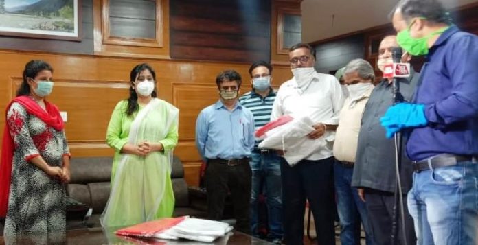 JAMMU: In continuation of efforts put forward by various Industrial units under CSR a progressive entrepreneur Ajay Mahajan of M/S Savita Enterprises along with Bansi Lal Gupta Senior Vice President Association of Industries Gangyal donated 100 PPE kits to Director Industries and Commerce Jammu, Anoo Malhotra for further distribution to the corona warriors like doctors, paramedics and the persons involved with the migrant movements.