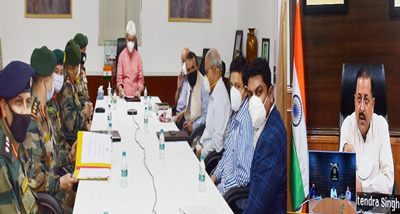 Brigadier Vikram Bhan, Commander, 9 Sector Rashtriya Rifles and S. Katoch, Commissioner Civil Aviation signed the MoU in the presence of LG, Manoj Sinha and Dr. Jitendra Singh, MoS PMO through video conferencing at Raj Bhavan, Jammu yesterday.
