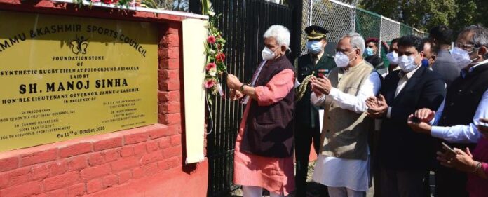On the occasion, the Lt Governor laid the foundation stones for Artificial Rugby Turf costing Rs 5 Cr and a Synthetic Hockey Turf worth Rs 5.5 Cr. Both projects will be completed in next financial year. He also e-inaugurated various PMDP projects and JKIDFC Projects worth Rs 17.03 Cr and Rs 27.75 Cr respectively.
