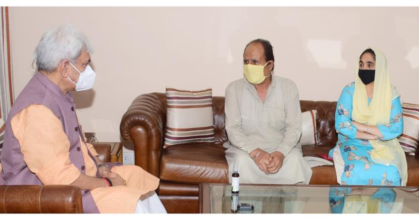 JAMMU: Lieutenant Governor Manoj Sinha today met with the Family members of deceased Sarpanch, Ajay Pandita Bharti who was killed by militants.
