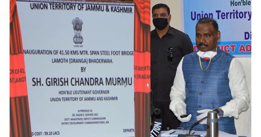 At the outset, the Lt Governor e-inaugurated various developmental projects which includes construction projects like- Gatha Gawari link road and its extension to New hospital building at Gawari, Chamba road to Akhroot Bagh Bhaderwah, Chakka to upper Dandi link road and 41.50 mtr span steel foot bridge at Lamoth Bhaderwah and project under PMDP for providing dedicated power to Jamia Masjid and Vaski Nag Temple Bhaderwah.