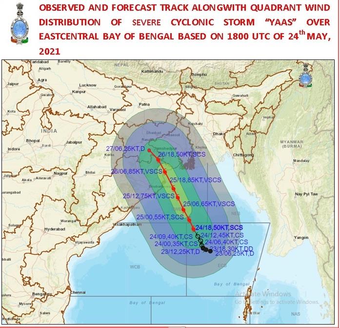 “The severe cyclonic storm Yaas over east-central Bay of Bengal moved north-northwestwards with a speed of about 9 kmph during past six hours and lay centred at 9 UTC of May 24 over east-central Bay of Bengal,” IMD said in its bulletin.