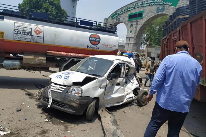 “The accident occurred around 12:30 PM due to alleged failure of brakes of the truck trailer,” they said, adding, three persons including truck trailer driver received critical injuries in the accident while as eight vehicles – two tankers bearing registration numbers JK02AU-4525 & JK02AJ-2793, one Santro car (JK02AR-5172), one Honda City car (JK02CJ-3188), one Tata Tiago car (JK02BE-4574), one i10 car (JK02AL-6760), one auto load carrier (JK02BV-6429) and an Alto car (JK02AR- 4086) were severely damaged.