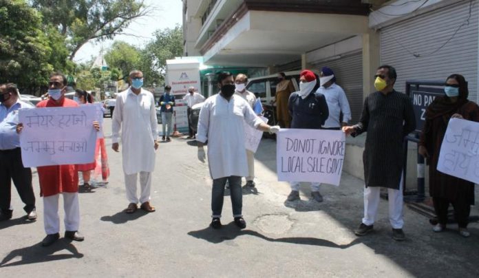 JAMMU: Dozens of Congress and independent corporators on Tuesday staged a protest at the Jammu Municipal Corporation (JMC) office, claiming that fumigation drives in the city have come to a standstill despite a spurt in coronavirus cases.