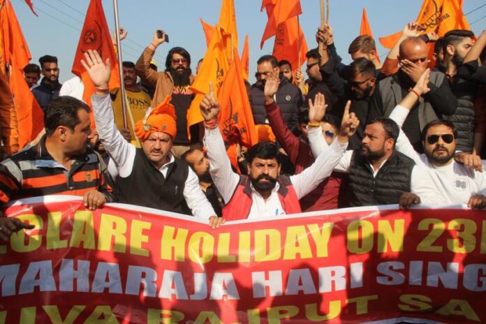 The birth anniversary of Maharaja Hari Singh is celebrated on October 23. Dozens of YRS activists assembled in front of the Maharaja’s statue at Tawi bridge and blocked both sides of the road and chanted slogans in support of their long-pending demand, officials said.