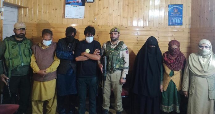 The details of those arrested are as f Rayees Ah Lone, of Dangerpora, Rafiabad, Bilal Ahmad Sheikh, of Binner, Baramulla, a female sex worker (name withheld), Shabir Ahmad War,of Rishipora Kralgund (house owner) and the wife of the house owner (name withheld).